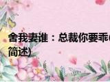 大家好,今天小方来说说一篇关于舍我妻谁:总裁你要乖,关于舍我妻谁:总裁你要乖部分内容简述的文章,那么现在就为大家来简单介绍下,希望 浏览全文>>
