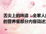 大家好,今天小方来说说一篇关于舌尖上的味道:全家人的营养餐,关于舌尖上的味道:全家人的营养餐部分内容简述的文章,那么现在就为大家来 浏览全文>>