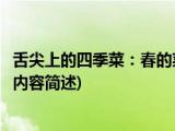 大家好,今天小方来说说一篇关于舌尖上的四季菜:春的菜,关于舌尖上的四季菜:春的菜部分内容简述的文章,那么现在就为大家来简单介绍下, 浏览全文>>