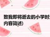 大家好,今天小方来说说一篇关于致我即将逝去的小学时光,关于致我即将逝去的小学时光部分内容简述的文章,那么现在就为大家来简单介绍下, 浏览全文>>