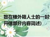 大家好,今天小方来说说一篇关于致在穗外籍人士的一封公开信,关于致在穗外籍人士的一封公开信部分内容简述的文章,那么现在就为大家来简单 浏览全文>>