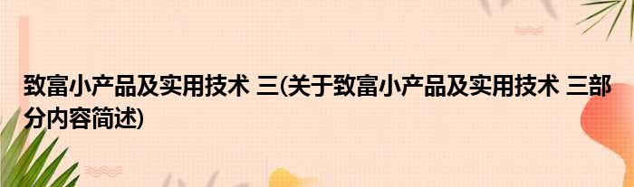 致富小产品及实用技术 三(关于致富小产品及实用技术 三部分内容简述)