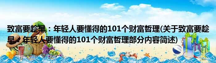 致富要趁早:年轻人要懂得的101个财富哲理(关于致富要趁早:年轻人要懂得的101个财富哲理部分内容简述)