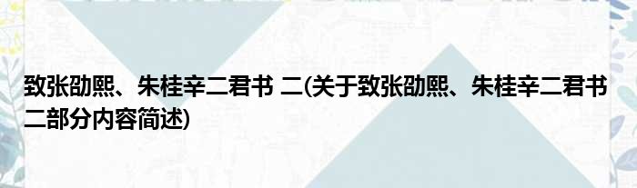 致张劭熙、朱桂辛二君书 二(关于致张劭熙、朱桂辛二君书 二部分内容简述)