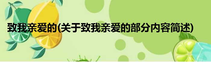 致我亲爱的(关于致我亲爱的部分内容简述)