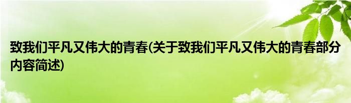 致我们平凡又伟大的青春(关于致我们平凡又伟大的青春部分内容简述)