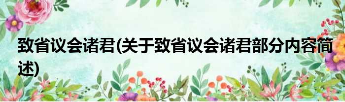 致省议会诸君(关于致省议会诸君部分内容简述)