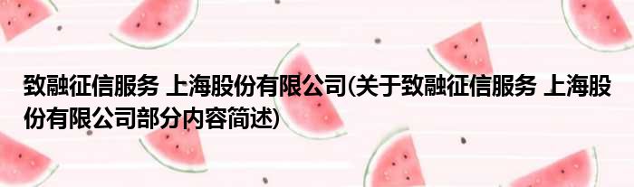 致融征信服务 上海股份有限公司(关于致融征信服务 上海股份有限公司部分内容简述)