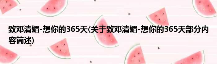 致邓清媚-想你的365天(关于致邓清媚-想你的365天部分内容简述)