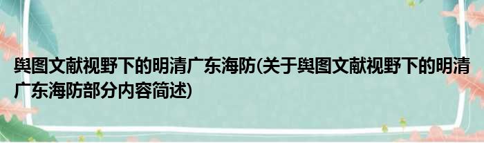 舆图文献视野下的明清广东海防(关于舆图文献视野下的明清广东海防部分内容简述)