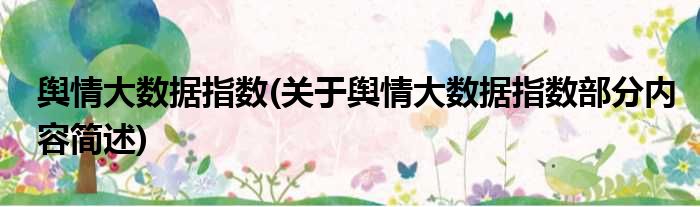 舆情大数据指数(关于舆情大数据指数部分内容简述)