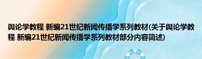 舆论学教程 新编21世纪新闻传播学系列教材(关于舆论学教程 新编21世纪新闻传播学系列教材部分内容简述)