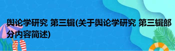 舆论学研究 第三辑(关于舆论学研究 第三辑部分内容简述)