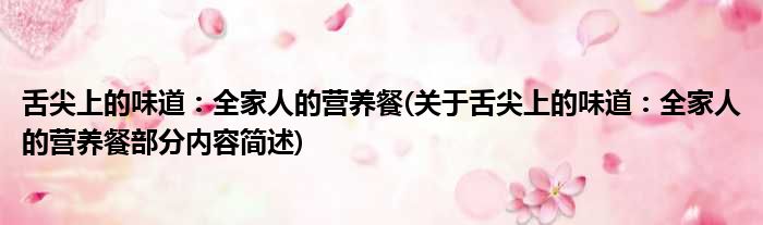 大家好,今天小方来说说一篇关于舌尖上的味道:全家人的营养餐,关于舌尖上的味道:全家人的营养餐部分内容简述的文章,那么现在就为大家来简单介绍下,希望对各位小伙伴们有所帮助。