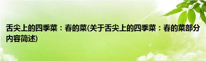 舌尖上的四季菜:春的菜(关于舌尖上的四季菜:春的菜部分内容简述)