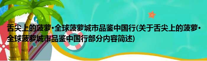 舌尖上的菠萝·全球菠萝城市品鉴中国行(关于舌尖上的菠萝·全球菠萝城市品鉴中国行部分内容简述)