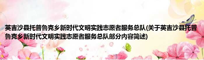 英吉沙县托普鲁克乡新时代文明实践志愿者服务总队(关于英吉沙县托普鲁克乡新时代文明实践志愿者服务总队部分内容简述)