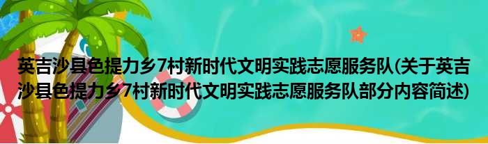 英吉沙县色提力乡7村新时代文明实践志愿服务队(关于英吉沙县色提力乡7村新时代文明实践志愿服务队部分内容简述)