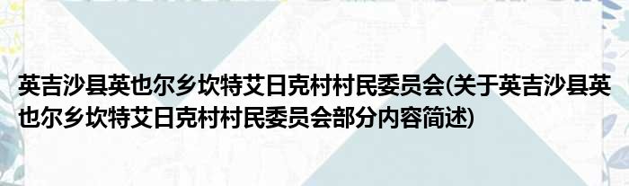 英吉沙县英也尔乡坎特艾日克村村民委员会(关于英吉沙县英也尔乡坎特艾日克村村民委员会部分内容简述)