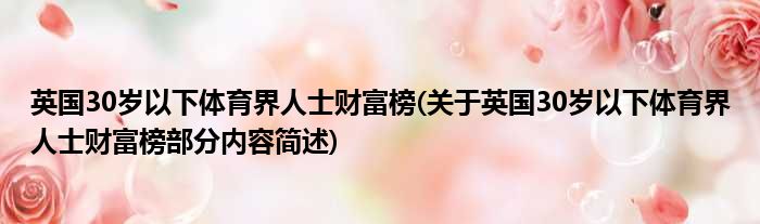 英国30岁以下体育界人士财富榜(关于英国30岁以下体育界人士财富榜部分内容简述)