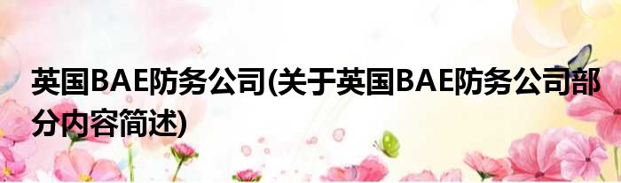 英国BAE防务公司(关于英国BAE防务公司部分内容简述)