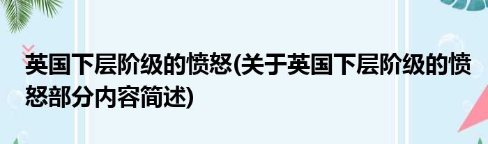 英国下层阶级的愤怒(关于英国下层阶级的愤怒部分内容简述)