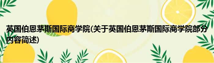 英国伯恩茅斯国际商学院(关于英国伯恩茅斯国际商学院部分内容简述)