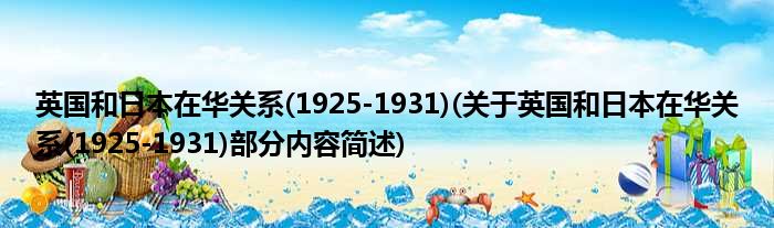 英国和日本在华关系(1925-1931)(关于英国和日本在华关系(1925-1931)部分内容简述)