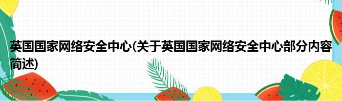 英国国家网络安全中心(关于英国国家网络安全中心部分内容简述)