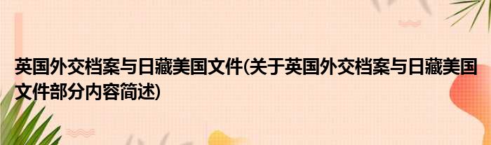 英国外交档案与日藏美国文件(关于英国外交档案与日藏美国文件部分内容简述)
