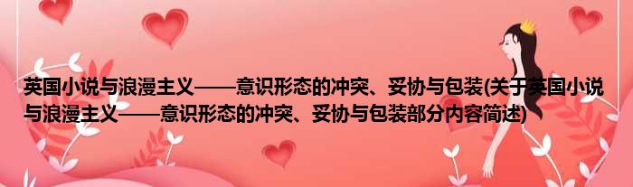 大家好,今天小方来说说一篇关于英国小说与浪漫主义——意识形态的冲突、妥协与包装,关于英国小说与浪漫主义——意识形态的冲突、妥协与包装部分内容简述的文章,那么现在就为大家来简单介绍下,希望对各位小伙伴们有所帮助。