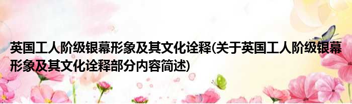 英国工人阶级银幕形象及其文化诠释(关于英国工人阶级银幕形象及其文化诠释部分内容简述)