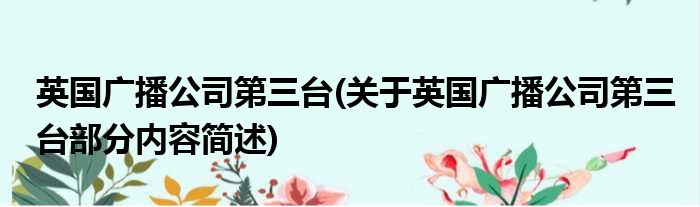 英国广播公司第三台(关于英国广播公司第三台部分内容简述)
