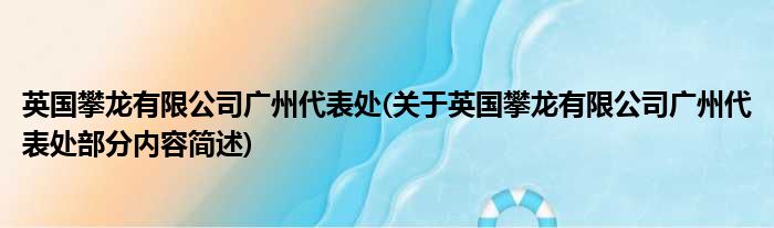 英国攀龙有限公司广州代表处(关于英国攀龙有限公司广州代表处部分内容简述)