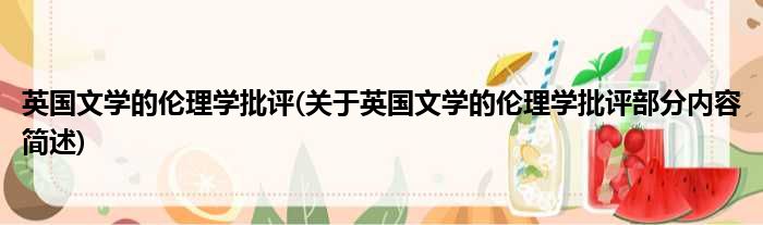 英国文学的伦理学批评(关于英国文学的伦理学批评部分内容简述)