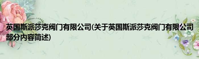 英国斯派莎克阀门有限公司(关于英国斯派莎克阀门有限公司部分内容简述)
