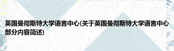 英国曼彻斯特大学语言中心(关于英国曼彻斯特大学语言中心部分内容简述)