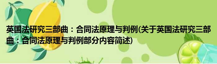 英国法研究三部曲:合同法原理与判例(关于英国法研究三部曲:合同法原理与判例部分内容简述)