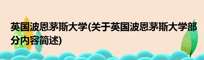 英国波恩茅斯大学(关于英国波恩茅斯大学部分内容简述)