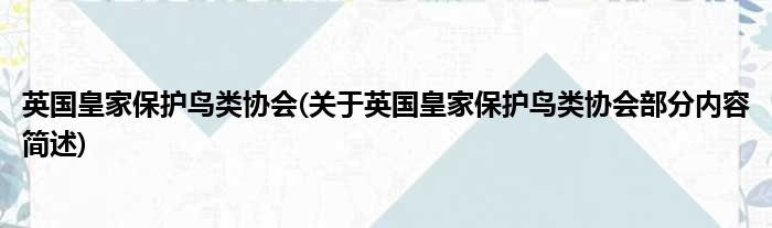 英国皇家保护鸟类协会(关于英国皇家保护鸟类协会部分内容简述)