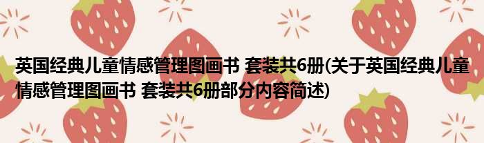 大家好,今天小方来说说一篇关于英国经典儿童情感管理图画书 套装共6册,关于英国经典儿童情感管理图画书 套装共6册部分内容简述的文章,那么现在就为大家来简单介绍下,希望对各位小伙伴们有所帮助。