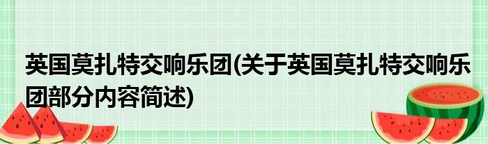英国莫扎特交响乐团(关于英国莫扎特交响乐团部分内容简述)