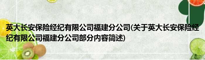 英大长安保险经纪有限公司福建分公司(关于英大长安保险经纪有限公司福建分公司部分内容简述)