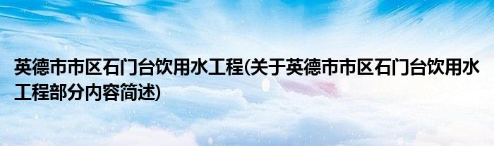 英德市市区石门台饮用水工程(关于英德市市区石门台饮用水工程部分内容简述)