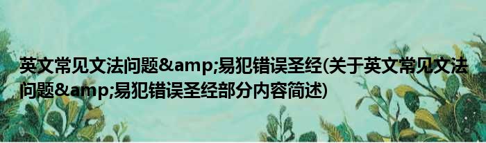 英文常见文法问题&易犯错误圣经(关于英文常见文法问题&易犯错误圣经部分内容简述)