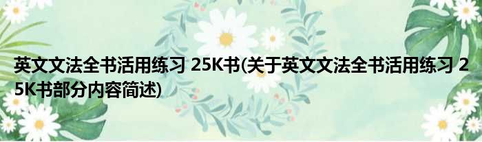 大家好,今天小方来说说一篇关于英文文法全书活用练习 25K书,关于英文文法全书活用练习 25K书部分内容简述的文章,那么现在就为大家来简单介绍下,希望对各位小伙伴们有所帮助。
