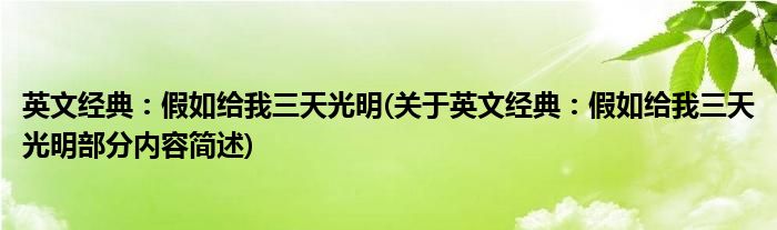 英文经典:假如给我三天光明(关于英文经典:假如给我三天光明部分内容简述)