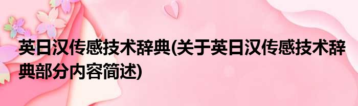 英日汉传感技术辞典(关于英日汉传感技术辞典部分内容简述)