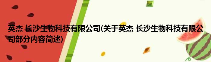 英杰 长沙生物科技有限公司(关于英杰 长沙生物科技有限公司部分内容简述)