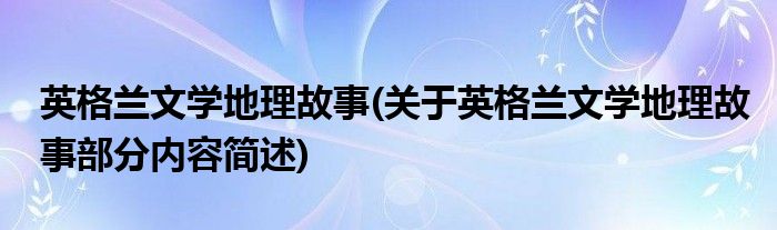 英格兰文学地理故事(关于英格兰文学地理故事部分内容简述)